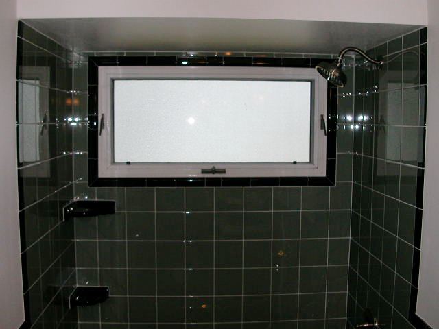 If you are tired of that old bathroom, we can rejuvenate it! How about replacing that shower curtain with a decorative glass door? We can fit shower and tub enclosures with tempered glass doors or plastic doors, either frameless like the one shown above or framed with a variety of textures and finishes. How about etched glass? Your design or ours! Or how about new tile, cultured marble, or granite? Want to change the colors of your bathroom? No problem! Contact us! |
