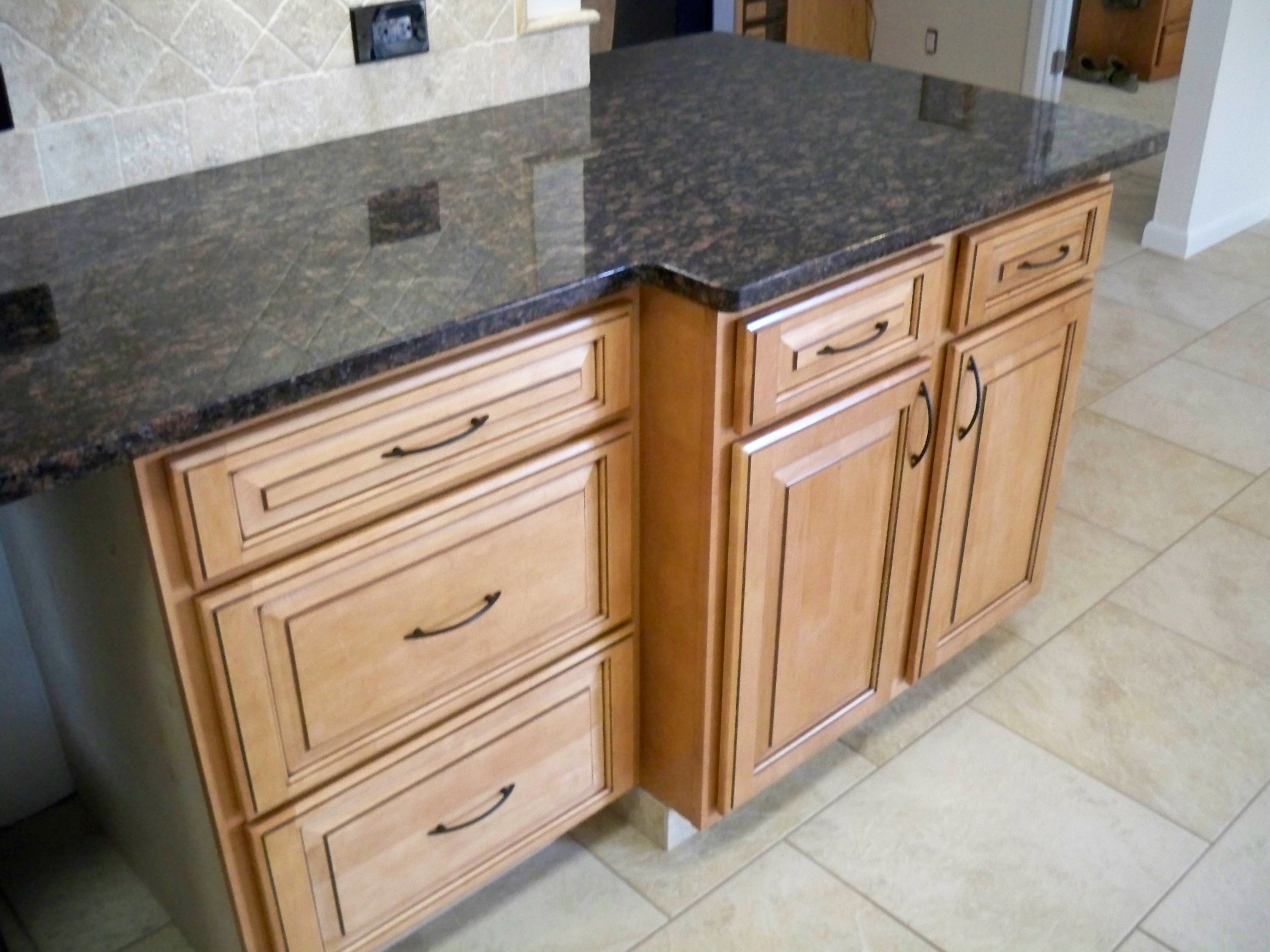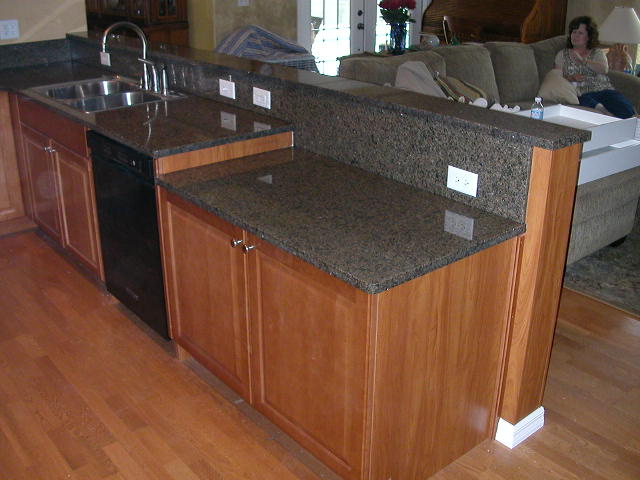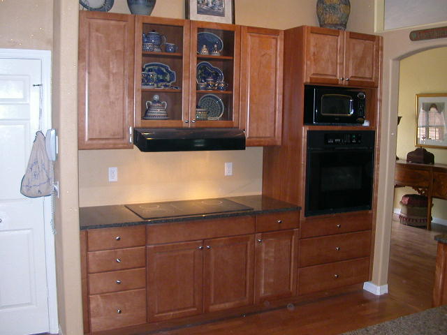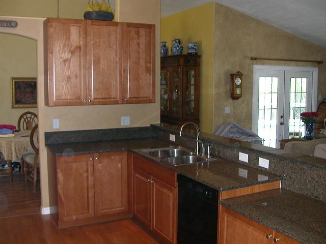 | We made numerous changes to this kitchen to make it perfect for the homeowner. Both husband and wife are tall persons so we raised the counter tops in this kitchen 2 1/2" to make them a little more user friendly. We finished off the job with a beautiful Fiorito granite and under mount sink. |